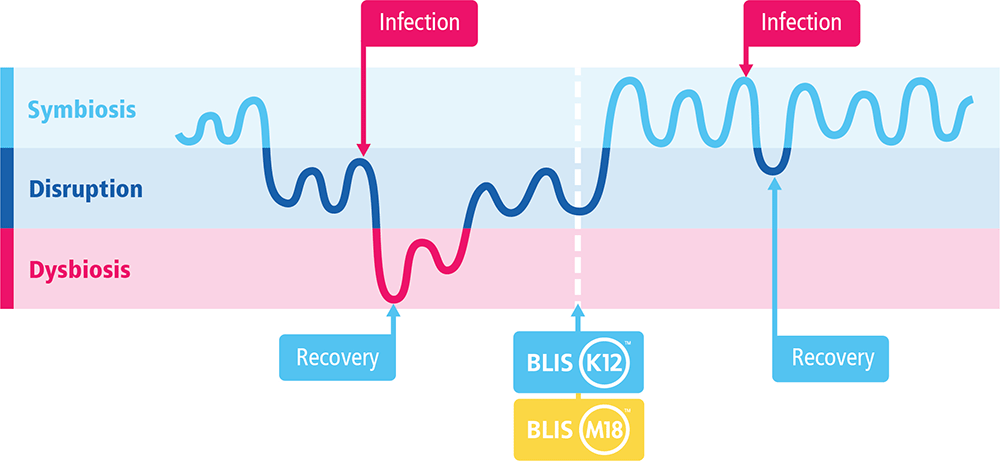 Practising good oral hygiene and a balanced diet will help support the delicate ecosystems in our mouths. Additionally, introducing BLIS K12™ and BLIS M18™ advanced oral probiotic supplements will help maintain a symbiotic oral microbiome – effectively crowding out and inhibiting the growth of harmful bacteria and stimulating the immune response against invading viral pathogens.